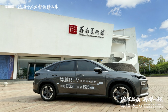 车队的最后一站是岭南美术馆,这座充满岭南建筑特色的场馆,是东莞艺术文化的地标之一。在这里,博越 REV 的科技质感与美术馆的艺术氛围完美融合,无论是简约的前脸设计,还是内饰的精致做工,都与场馆内的艺术气息相得益彰。