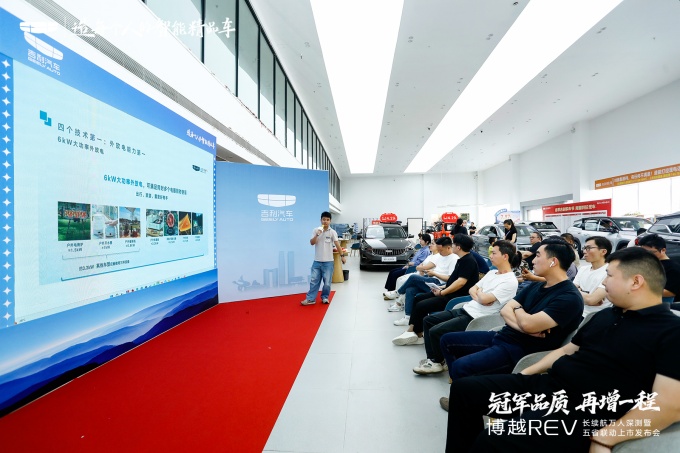 随后的内训师产品讲解环节,将博越 REV 的核心实力一一拆解:行业首发的11 合 1 全栈自研增程电驱,搭配 47.26% 热效率的超高效增程器,实现了 1L 油可发电 3.77 度的行业领先能效;CLTC 纯电续航 375km、综合续航 1525km 的表现,更彻底打破了用户对增程车型的续航顾虑;而神盾金砖电池的加持,则从安全层面为用户的日常出行筑牢了防线。
