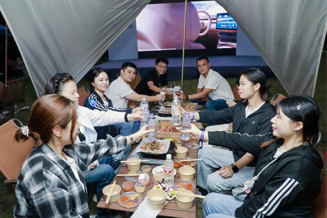 活动现场设有星球灯DIY创意手作区,嘉宾们在自然光影间亲手制作独一无二的星球灯,感受艺术与科技的灵感碰撞。一旁的休闲垂钓区则为喜爱宁静的嘉宾提供放松身心的去处,传递出深蓝汽车所倡导的“慢生活”理念。傍晚时分,营地烤肉晚宴在星空下温馨开启,嘉宾们在美食与畅谈中拉近距离,深化了品牌与用户之间的情感链接。